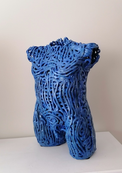 Mit diesen Tonen lassen sich völlig neue Objekte gestalten.Feingliedrige und gröbere Teile sind an einem Werkstück möglich.Auch ganz Neues ist möglich, wie bei dem Torso in Schlingentechnik.