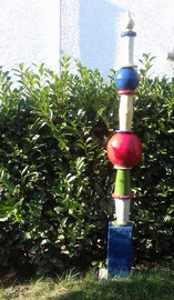 Eine grosse Gartenstele - ca. 2meter hoch - entstand in der VHS Mainz aus verschiedenen glasierten Einzelteilen.